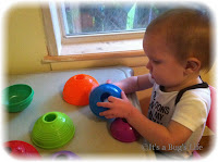We used our Feelings Tot Book this week which is still a little advanced for him but he is beginning to understand that the different faces mean different things. He laughed when I told him mommy was tired and needed some zzzs.
